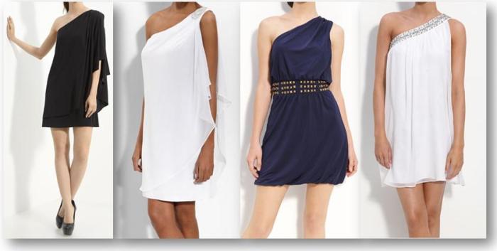 TOP: 1. Rachel Zoe: ‘Grecian’ Stretch Silk Dress 2. JS Boutique: Embellished One Shoulder Chiffon Dress 3. Laundry by Shelli Segal: Studded One Shoulder Jersey Dress 4. Calvin Klein: One Shoulder Chiffon Dress with Rhinestone Trim BOTTOM: 1. Soprano One Shoulder Draped Dress 2. Adrianna Papell: One Shoulder Twist Charmeuse Gown 3. Suzi Chin: Maggy Boutique Cutaway Shoulder Beaded Jersey Dress 4. Aidan Mattox: Draped One Shoulder Stretch Satin Dress