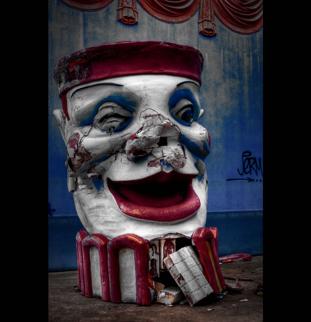 ‘Derelict Clown, Six Flags New Orleans, Photographed bylostlosangeles via LoveThesePics’ Published April 24, 2013 at 990 × 1024 in Bury the Carnival: 50 Eerie Photos of Abandoned Amusement Parks ‹ Back