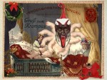 Since the 19th century, Krampus cards or Krampuskarten bearing the slogan Gruß vom Krampus (“Greetings from the Krampus”) were a popular way to send holiday wishes. In honor of this week’s traditional Krampus celebration, enjoy this gallery of vintage Krampuskarten and Krampuslauf revelers, and don’t forget to be good, kittens…unless, of course, you are looking forward to a visit from the Krampus this year.