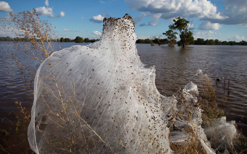 ‘Thousands of Spiders Seek Higher Ground after Flooding Photgraphed by Lukas Coch, EPA, 2012’ Published November 19, 2013 at 858 × 536 in Sorry I’m Not Home Right Now: The Spider Fields of Wagga Wagga, Austrailia ‹ Back