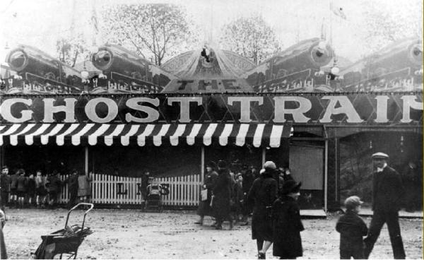 ‘Joe Ling’s Ghost Train, Hull Fair 1931, via Fairground Society’ Published July 30, 2014 at 600 × 368 in It Is the Hour of Departure: Turn-of-the-Century Ghost Rides ‹ Back